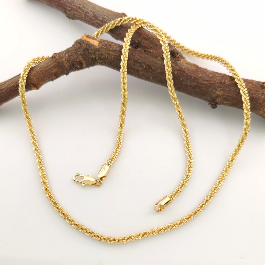 Ez az aranyszínű nyaklánc egy igazán elegáns és időtálló ékszer, amely minden alkalomra tökéletes választás. A szemek finoman megmunkált mintája eleganciát sugároz, miközben a finom aranyszín ragyogása minden ruhadarabbal könnyedén kombinálható.