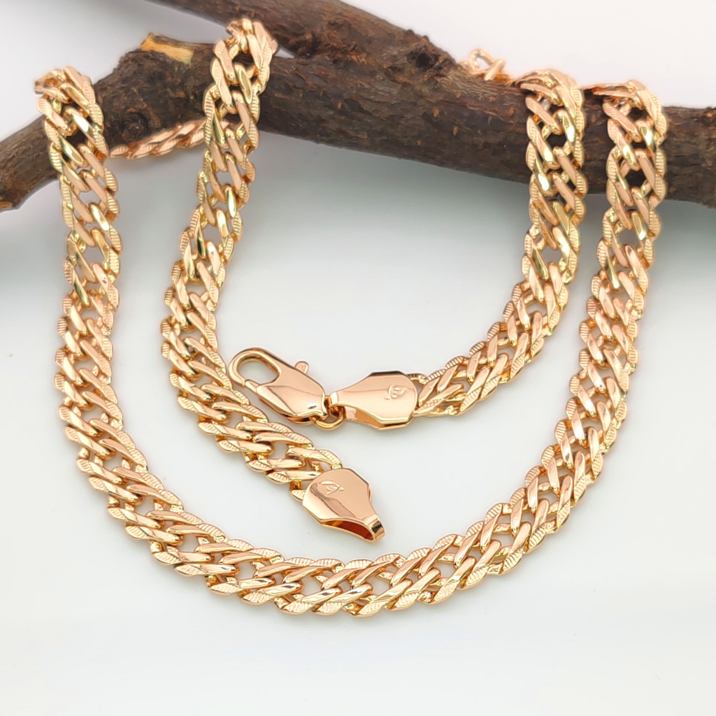 Ez az aranyszínű nyaklánc egy igazán elegáns és időtálló ékszer, amely minden alkalomra tökéletes választás. A dupla szemek finoman megmunkált fonott mintája és a laza kialakítás eleganciát sugároz, miközben a finom aranyszín ragyogása minden ruhadarabbal könnyedén kombinálható.