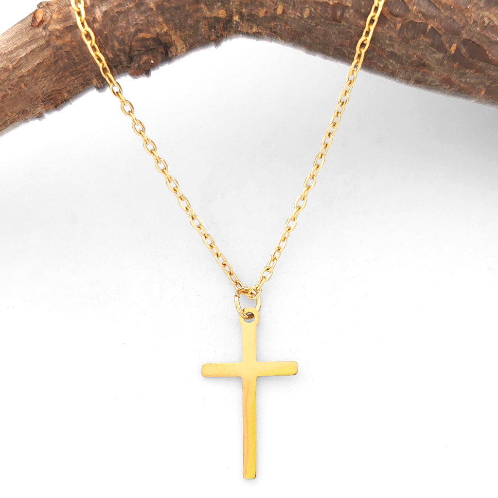 Gyönyörű, aranyszínű nemesacél kereszt medál nemesacél nyaklánccal.