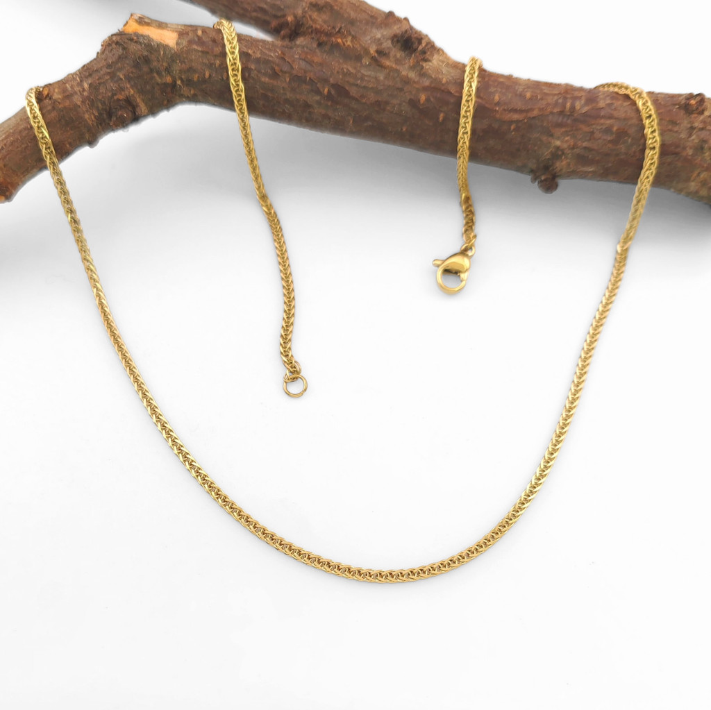 Ez az aranyszínű nyaklánc egy igazán elegáns és időtálló ékszer, amely minden alkalomra tökéletes választás. A szemek finoman megmunkált mintája eleganciát sugároz, miközben a finom arany szín ragyogása minden ruhadarabbal könnyedén kombinálható.