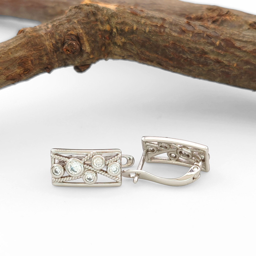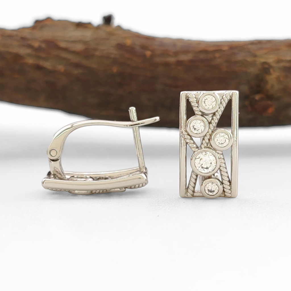 Ez az ezüstszínű fülbevaló a finom elegancia és a ragyogás tökéletes kombinációja. A csillogó fehér cirkónia kristályok különleges látványt nyújtanak, melyeket ragasztott, peremezett foglalat tart biztonságosan a helyükön. A fülbevaló minden egyes kristálya ragyogással tölti meg a megjelenést.