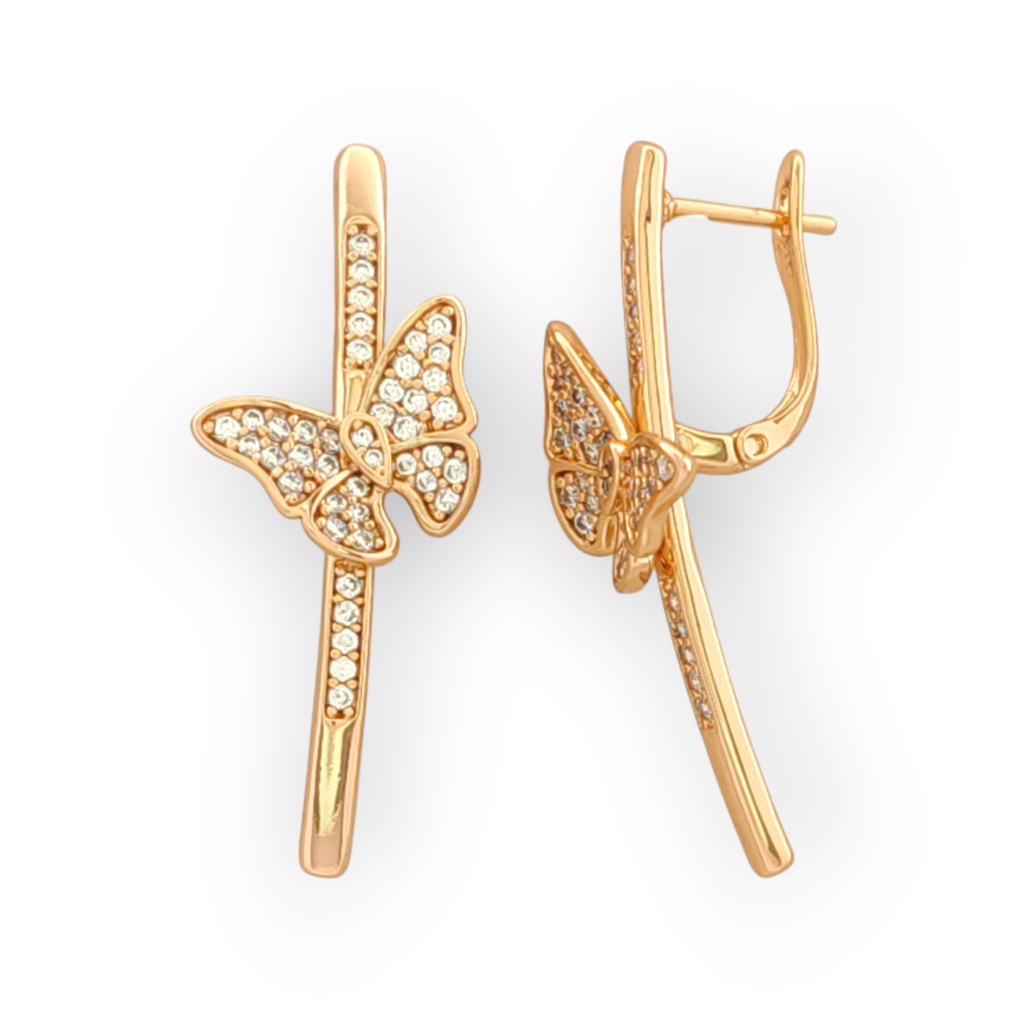 Elegáns és időtlen pillangó dizájn, melyet ragyogó, fehér cirkónia kristályok tesznek igazán különlegessé. A kristályok biztonságos, karmos foglalatban helyezkednek el, így garantált a tartós csillogás.