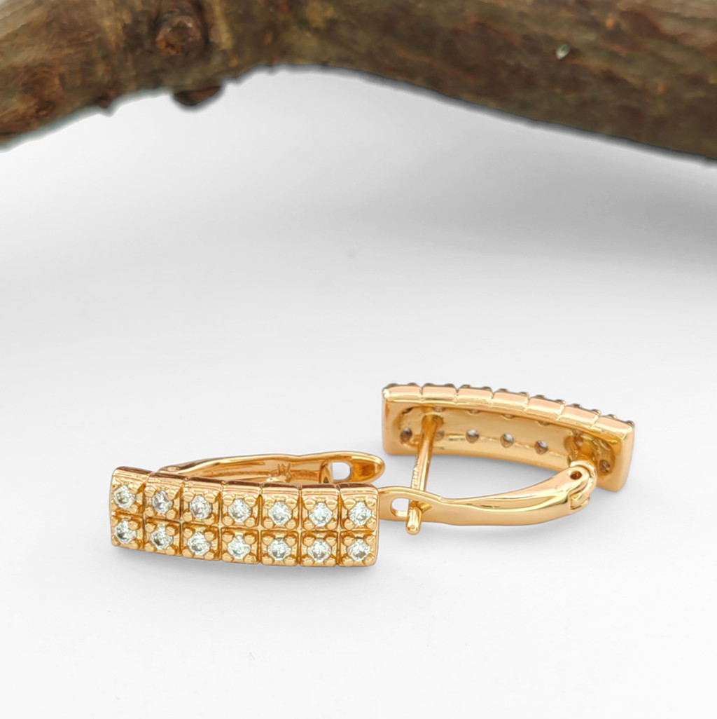 Ez az aranyszínű fülbevaló a finom elegancia és a ragyogás tökéletes kombinációja. A csillogó fehér cirkónia kristályok különleges látványt nyújtanak, melyeket karmos foglalat tart biztonságosan a helyükön. A fülbevaló minden egyes kristálya ragyogással tölti meg a megjelenést.