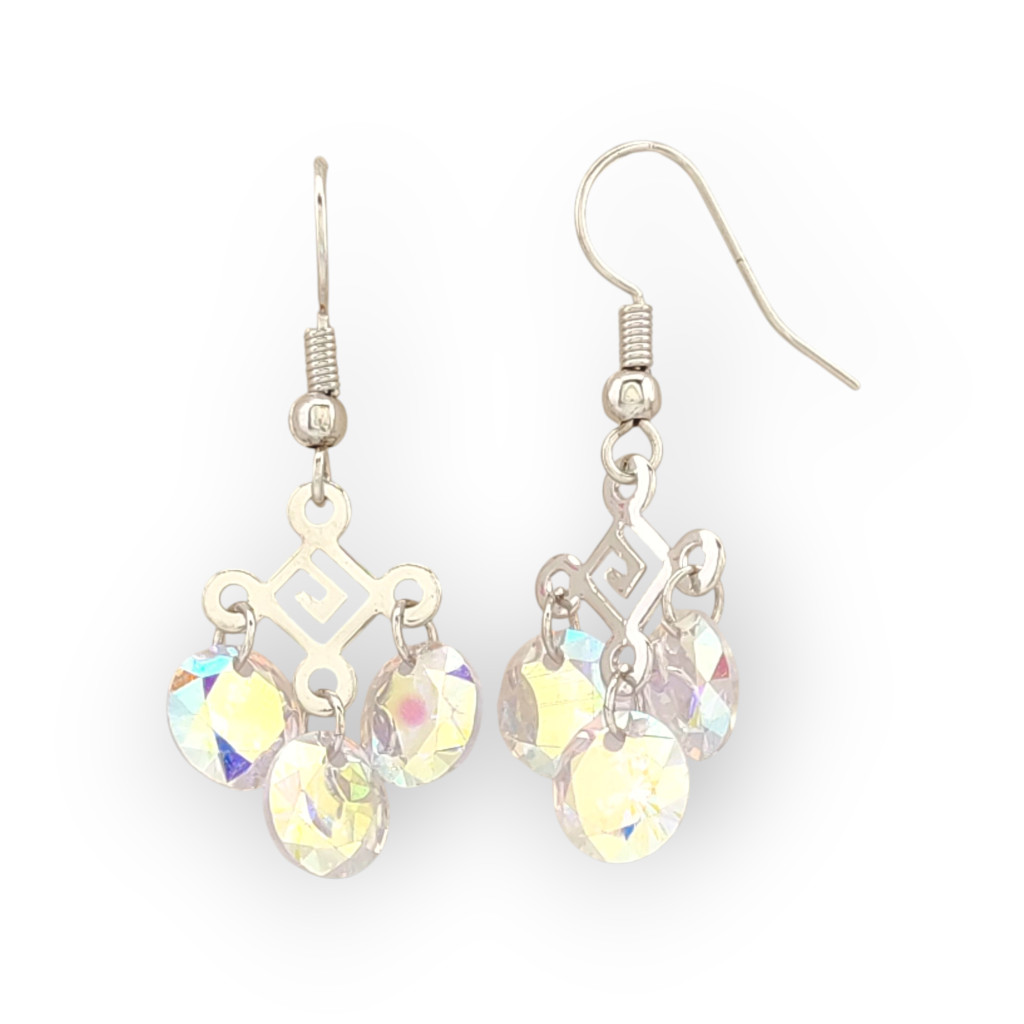 Vany ezüstszínű orvosi fém fülbevaló kristály díszítéssel