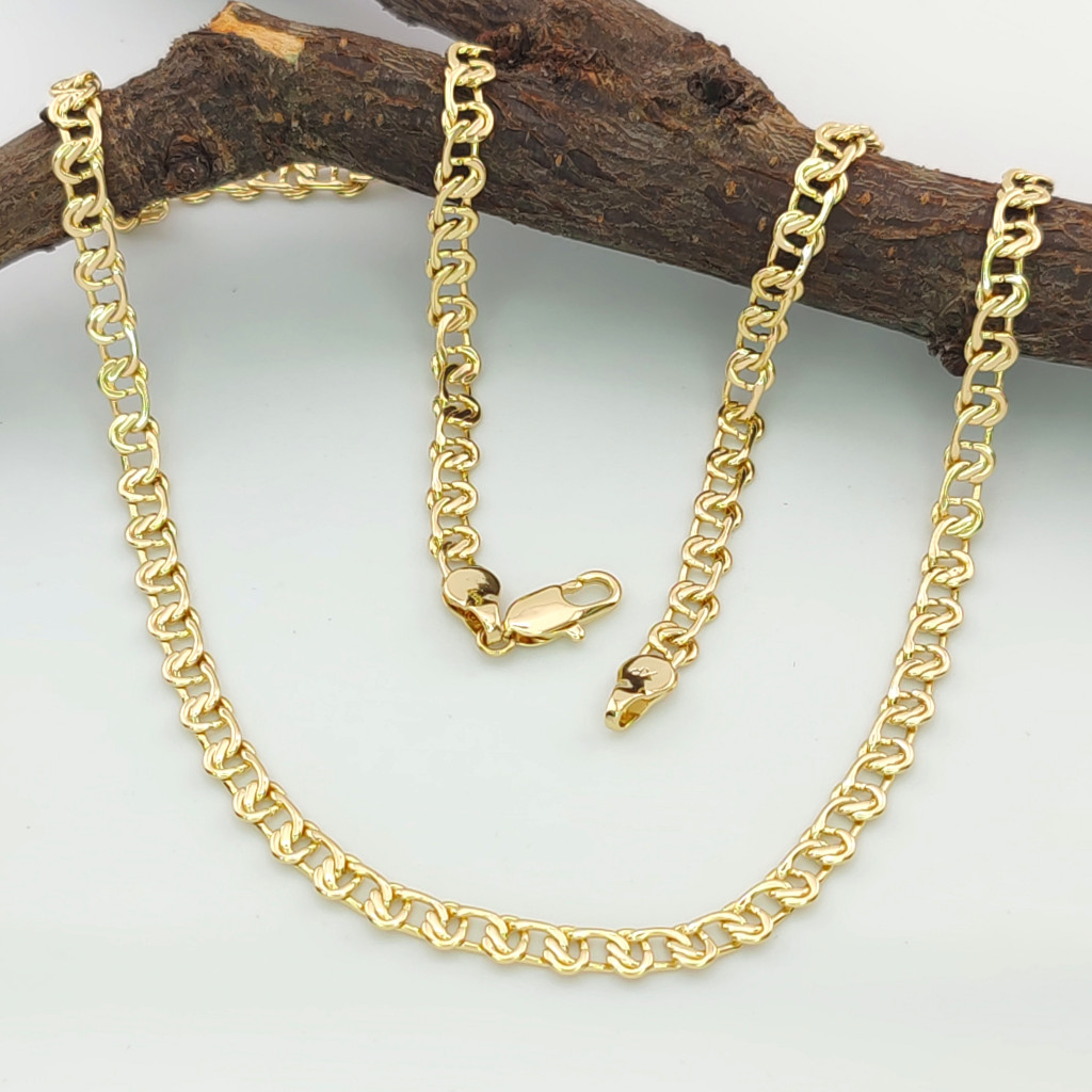 Ez az aranyszínű nyaklánc egy igazán elegáns és időtálló ékszer, amely minden alkalomra tökéletes választás. A szemek finoman megmunkált mintája eleganciát sugároz, miközben a finom aranyszín ragyogása minden ruhadarabbal könnyedén kombinálható.